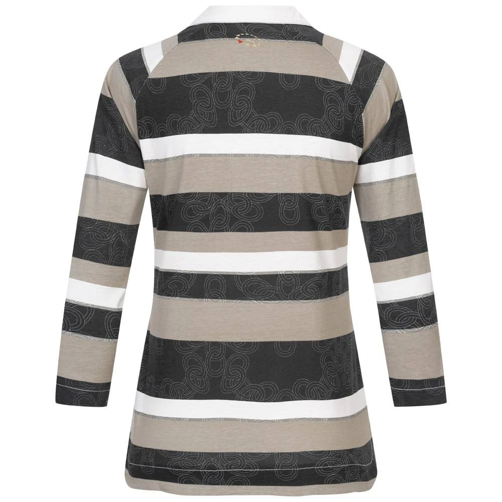 - klassischer Polokragen mit größtenteils verdeckter 6er-Knopfleiste
